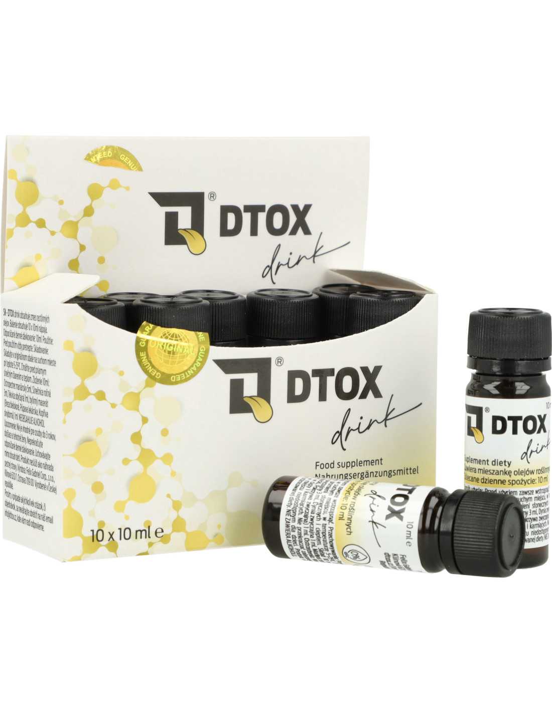 DTOX Drink to bezalkoholowy suplement diety w formie jednorazowej porcji 10 ml, oparty na mieszance olejów tłoczonych na zimno oraz maceratu ziołowego. Formuła została opracowana z wykorzystaniem składników pochodzenia roślinnego, tradycyjnie stosowanych w holistycznej pielęgnacji organizmu i jamy ustnej.