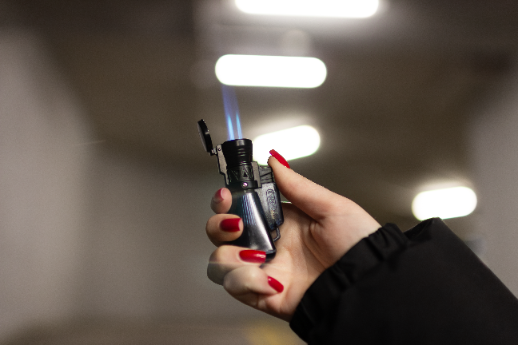 Dzięki płynnej regulacji użytkownik ma pełną kontrolę nad intensywnością płomienia – od bardziej precyzyjnego grzania po maksymalną moc. Intuicyjna obsługa sprawia, że zapalniczka dobrze sprawdza się zarówno dla początkujących, jak i bardziej wymagających użytkowników.